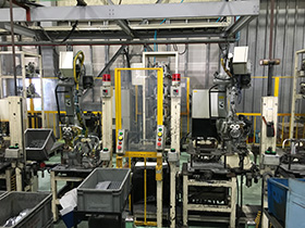 弊社では35~110KVAの定置スポット溶接機を複数そろえ、厚さ0.6〜4.5mmまでのSPC、SPH普通材から表面処理材、アルミメッキ材、ステンレス材まで広範な加工用途に対応。さらに、汎用ガンロボットSPOT溶接ライン、汎用治具持ちロボットSPOT溶接ラインが、さまざまな自動車部品の加工に威力を発揮します。